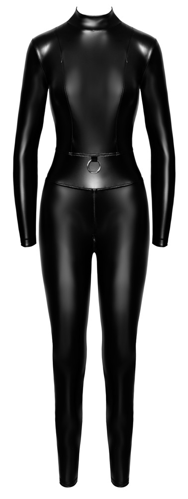 - Material Excellence: Crafted from high-quality black power wetlook material (76% polyester, 24% elastane, polymer coating), this jumpsuit offers a sleek, form-fitting silhouette that behaves like a second skin while ensuring comfort and flexibility.