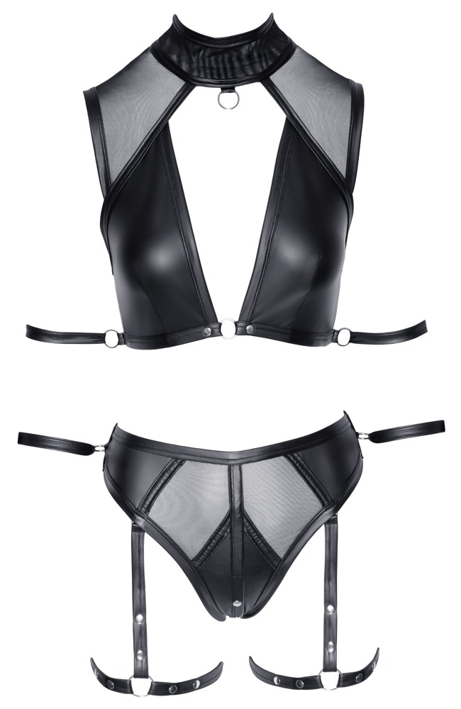 Cottelli BONDAGE Matt Black Top & Briefs Set with Restraint System XL