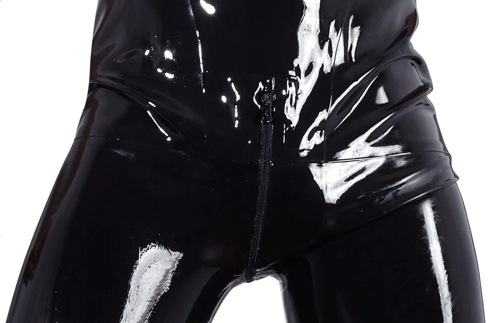 This form-fitting jumpsuit is crafted from premium-quality natural latex, designed to embrace the body like a second skin for a modern and streamlined look. The suit features a practical two-way zipper that extends from the front through the lower section, allowing for convenient adjustments while maintaining a seamless appearance. The ergonomic construction ensures a snug yet flexible fit, adapting perfectly to the body’s contours for unhindered movement and superior comfort.