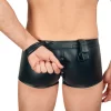 The padded front zip ensures both practicality and visual appeal, making these shorts a versatile addition to any wardrobe. The shorts are made from a high-quality stretch fabric, delivering exceptional comfort and freedom of movement. The polyurethane coating adds a refined touch to the matte material, enhancing durability and style.