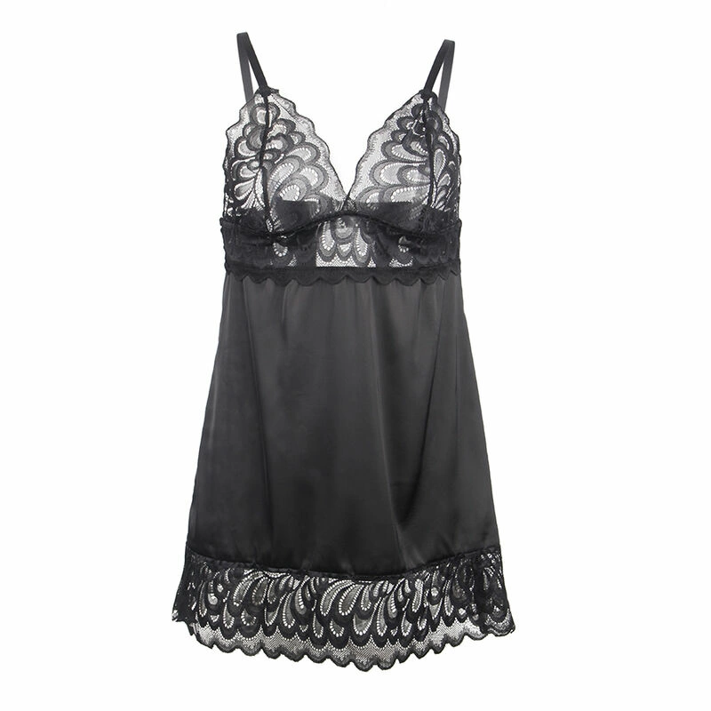 Elevate your evening wardrobe with the Subblime Babydoll, designed for those who appreciate a sophisticated blend of elegance and contemporary style. This model features a delicately crafted floral lace chest panel, creating a visually appealing contrast with the smooth, flowing black fabric. The lightweight material ensures a comfortable fit, making it perfect for long wear.