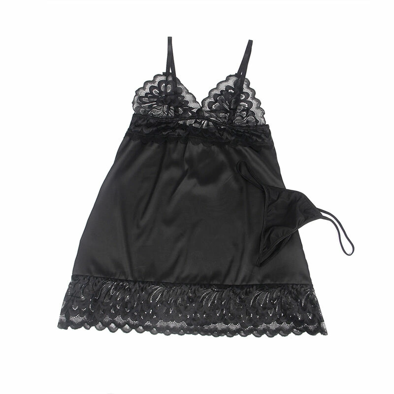 Included is a matching thong, completing the coordinated look. The babydoll is equipped with a discreet back opening for added convenience and a refined silhouette. Designed in the USA and made from high-quality materials, this set offers a luxurious feel and lasting durability.